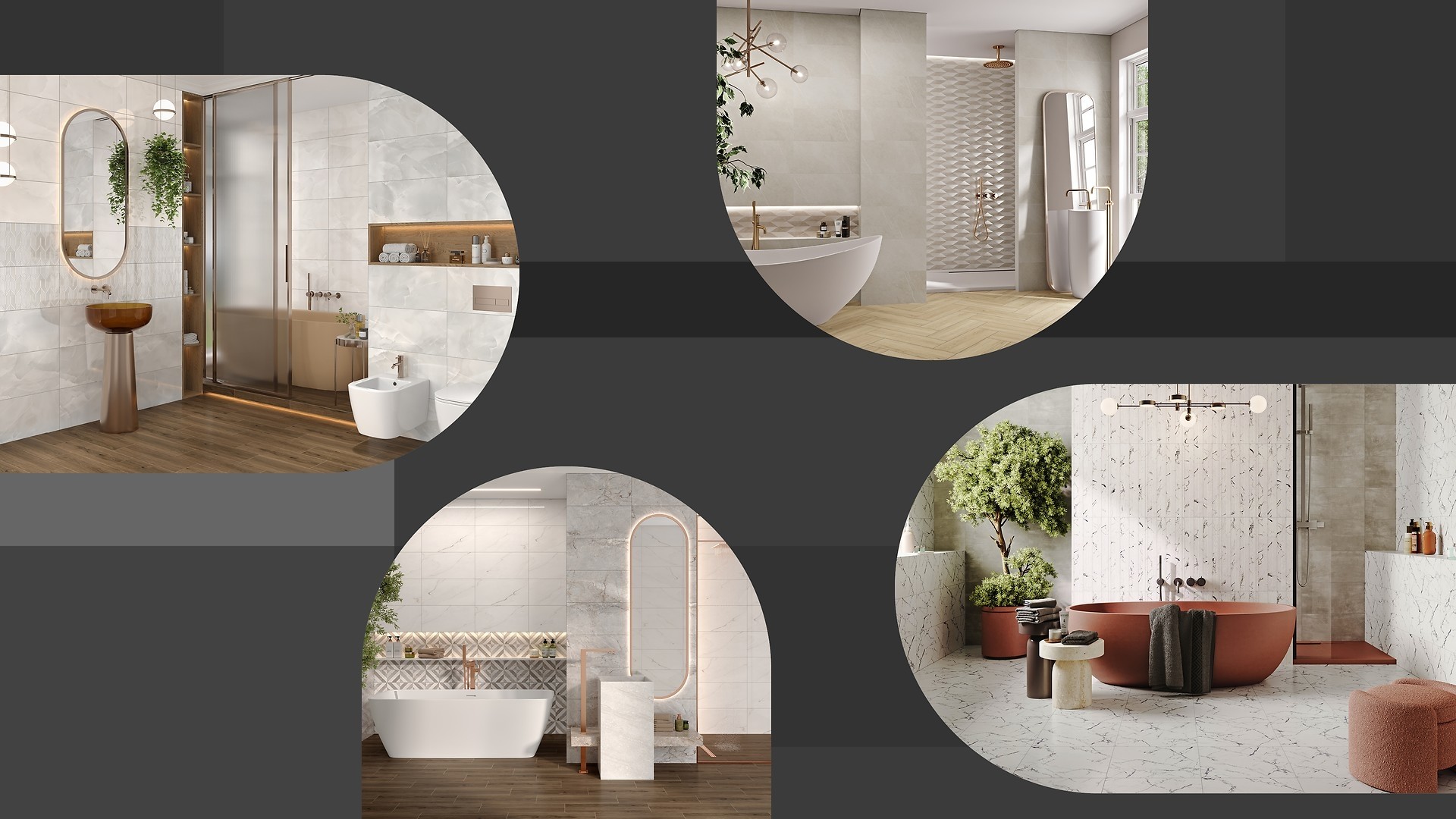 Кожен інтер'єр має відображати індивідуальні уподобання. Але оскільки іноді їх важко визначити, ми підготували колекції плиток у шести сегментах, натхненні природою, мистецтвом і культурою, з-поміж яких ви відшукаєте основний мотив вашої ванної кімнати.