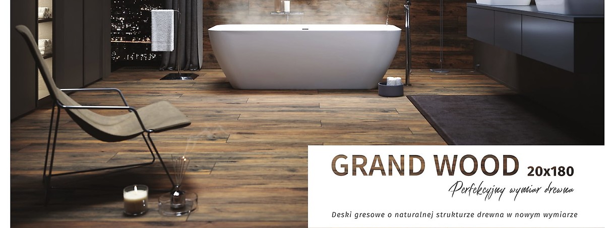 Wood inspired tiles have the shape of natural floor boards. However, you can choose their size. For example, tiles from the Grand Wood collection are available in various sizes, similar to natural boards:20x120 and 20x180 cm. What are the options of a large format wood-look tile? First of all, it allows you to reduce the number of joints and give your interior more spaciousness. It is also worth paying attention to the surface of the tile. The structured surface will be much more natural, with the texture reflecting real boards. This effect will also be strengthened by the grout. Which grout will work best for wood-look tiles? Let's take a minimum width of 2 mm. What colour of grout should you choose for wood-look tiles? Preferably a few tones darker than the tiles. It is also good to pay attention to the tonality - tonal wood-look tiles are a guarantee of the diversity of graphics on the tile, reflected in the form of the non-uniform colouration and contrast of the rings.