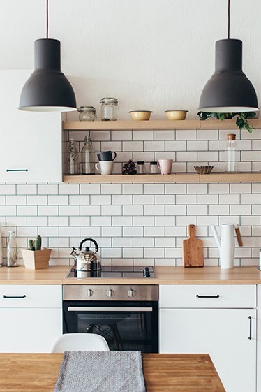 An island with a hot plate and a countertop serving as a table is an interesting idea for arranging the space between the kitchen and the living room. It fosters communication in the room. The person preparing the meals is facing those sitting at the countertop and can easily participate in the conversation. You may separate the kitchen zone by laying different material on the living room floor. Pick the elegant Grava White collection in soft colours to give the interior a natural, stony character and to clearly separate both spaces. If you choose an island, you may either opt out of having a table or, just the opposite, provide the room with two places where you can sit. The second solution will definitely increase the costs, but the advantages of having more seats, especially for those who cook or spend a lot of time in the kitchen, are invaluable. It is also very important to have matching furniture colours in both rooms because, after all, they form one space. For example, you may choose kitchen cupboards with wooden veneer fronts – they will look good next to the living room furniture.