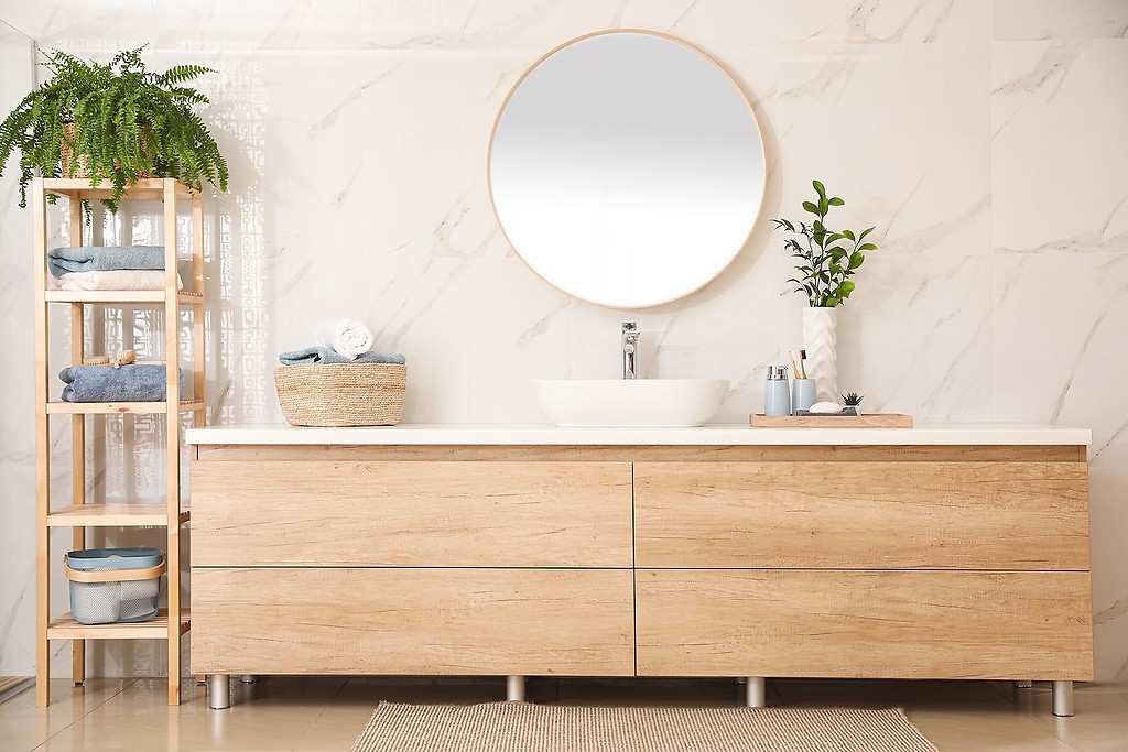 Бажаєте облаштувати ванну кімнату в тропічному кліматі? Подбайте не тільки про рослини у ванній кімнаті, а й про інтер’єрні кольори. Оберіть настінну плитку, натхненну натуральним деревом, і покрийте підлогу сірою плиткою, наприклад кольору бетону. Меблі, вочевидь, теж повинні бути кольору «теплого дерева», а навколо рослини, не тільки зелені, а й кольорові. Ідеальним вибором стане кротон, квітка зі шкірястим листям, що переливається різними кольорами. Він дуже любить світло та сильну вологість, однак потребує трохи більше світла, ніж згадані вище рослини, тому найкраще буде почуватися у ванній кімнаті з вікном.